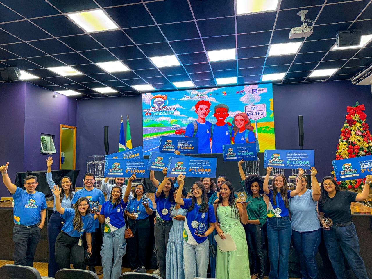 Durante quatro meses, estudantes de 12 escolas localizadas nas proximidades da BR-163 tiveram a educação para o trânsito incorporada à grade de ensino por meio do projeto Condutores do Amanhã, uma ação inédita no estado. O encerramento da primeira edição aconteceu na sexta-feira (07), em Cuiabá, e foi marcado por uma cerimônia de premiação de estudantes, professores e escolas mais engajados, além da assinatura de protocolo de intenções para expansão do projeto em 2026. A ação é uma iniciativa da Nova Rota do Oeste, em parceria da Agência Nacional de Transportes Terrestres (ANTT) e Secretaria de Estado de Educação (Seduc-MT).
