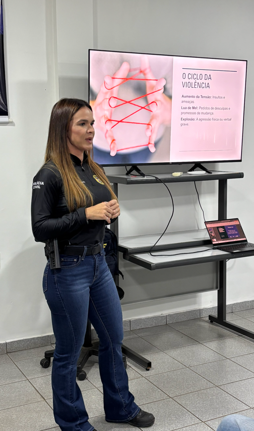 Motoristas e ocupantes de veículos de passeio também foram convidados a participar da mobilização. Eles foram abordados e assistiram a uma palestra no auditório da PRF com orientações sobre assédio sexual, violência doméstica e os canais disponíveis para atendimento e proteção às mulheres.
