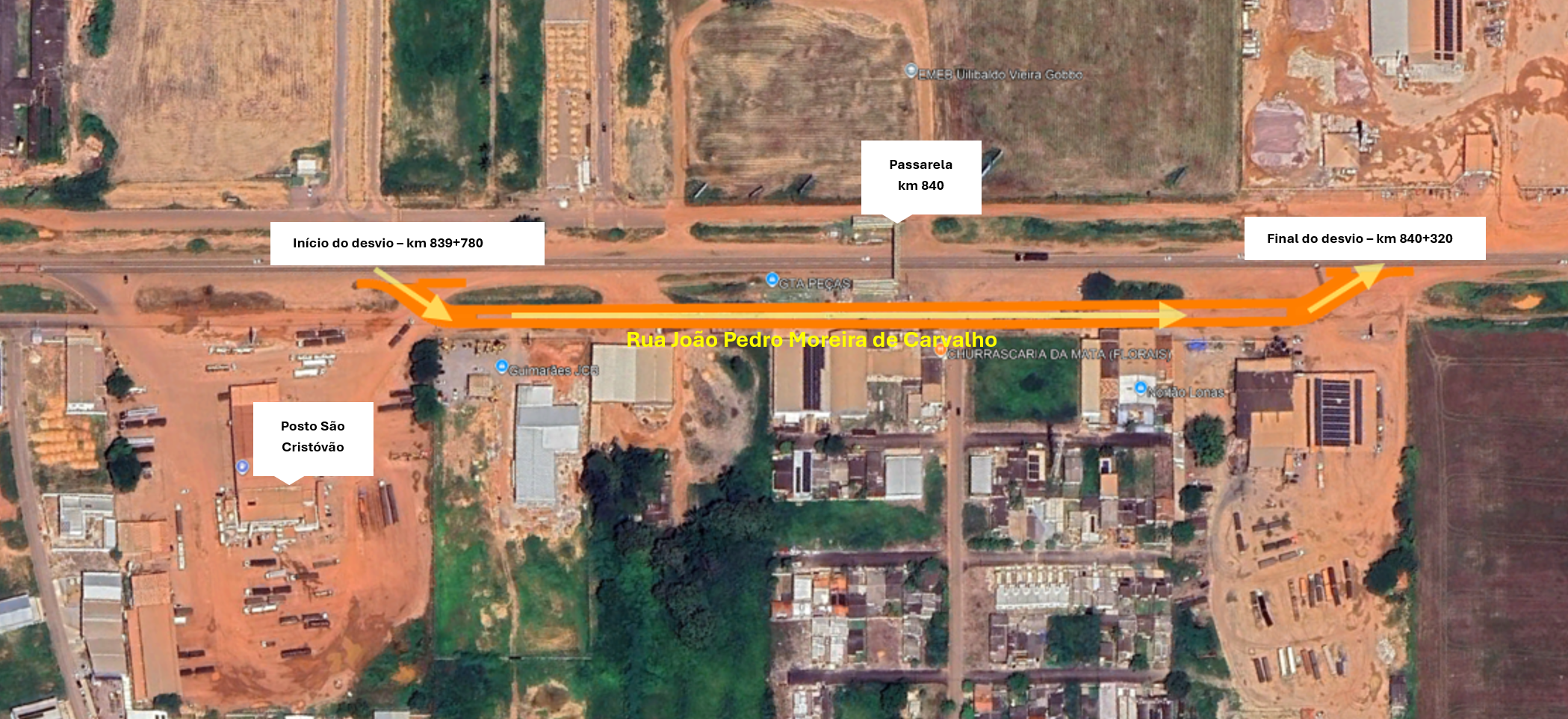 Durante o período de obras, haverá mudanças no tráfego para garantir a segurança dos motoristas e das equipes envolvidas. O tráfego da pista norte da BR-163 (sentido Pará) será desviado para uma via paralela à rodovia. Já os veículos que seguem no sentido centro de Sinop continuarão trafegando pela BR-163, porém com estreitamento de pista. A Concessionária orienta os condutores a reduzirem a velocidade e respeitarem a sinalização e as orientações no local.