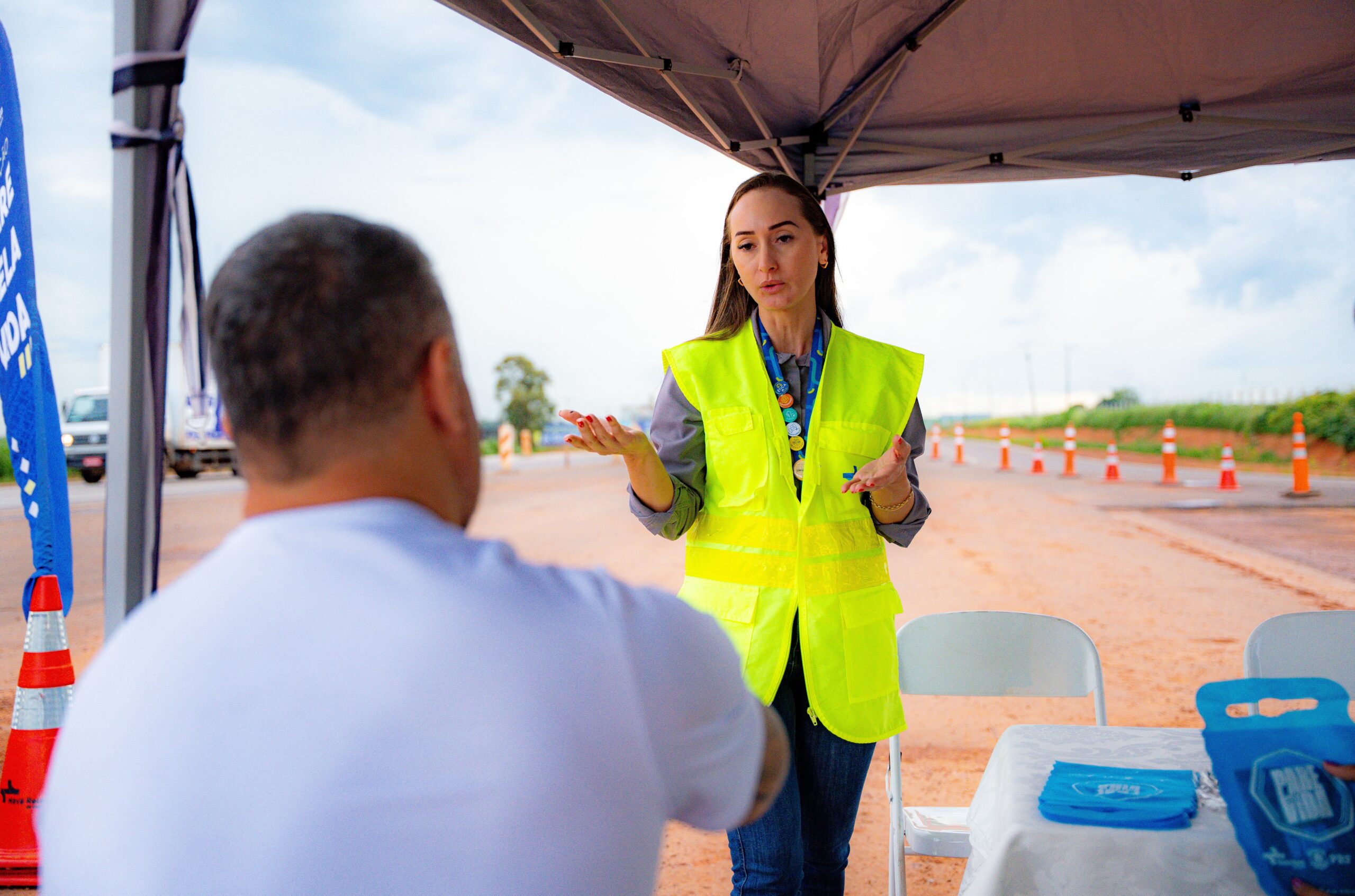 A blitz educativa integra um pacote de ações com foco na segurança viária no trecho da Nova Rota do Oeste com apoio da Agência Nacional de Transportes Terrestres (ANTT) e reforça o mote: “Desacelere. Seu bem maior é a vida”.