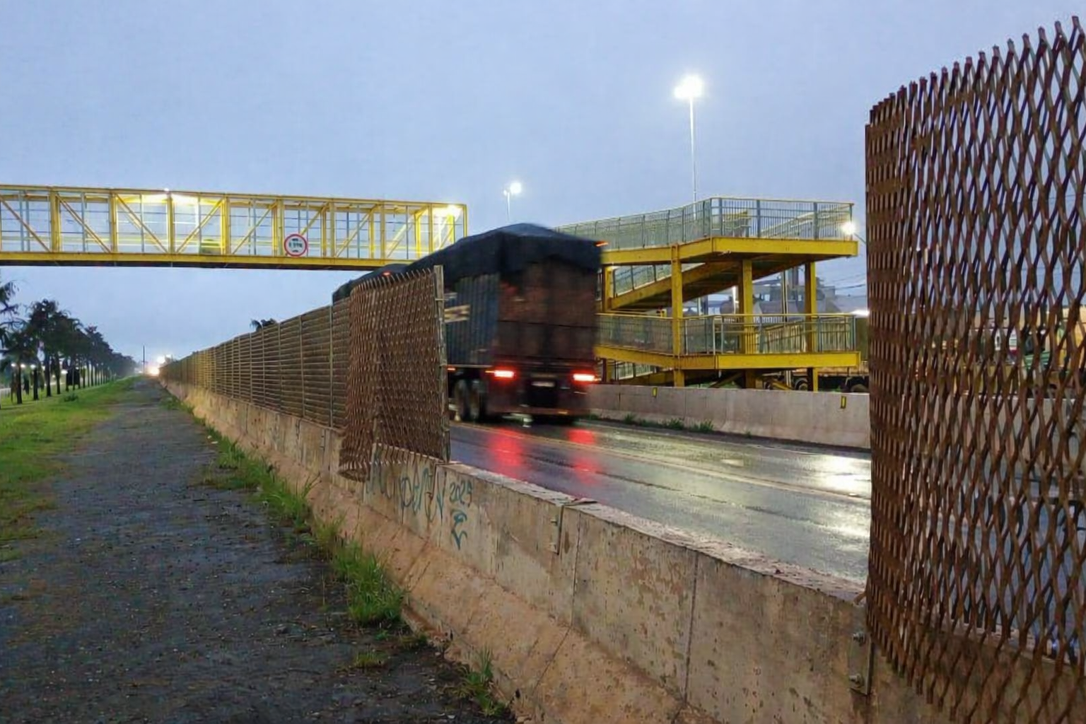 As barreiras foram projetadas para desestimular a travessia no meio da pista e direcionar o pedestre ao uso da passarela, estrutura construída justamente para garantir uma travessia segura. Quando essas proteções são quebradas, abre-se espaço para o risco: pedestres voltam a cruzar a pista entre os veículos, em pontos de intenso fluxo e velocidade.